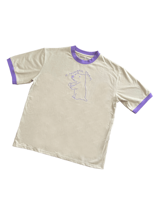 A Colourful Storm Capybara Cream and Lilac Oversized Tee